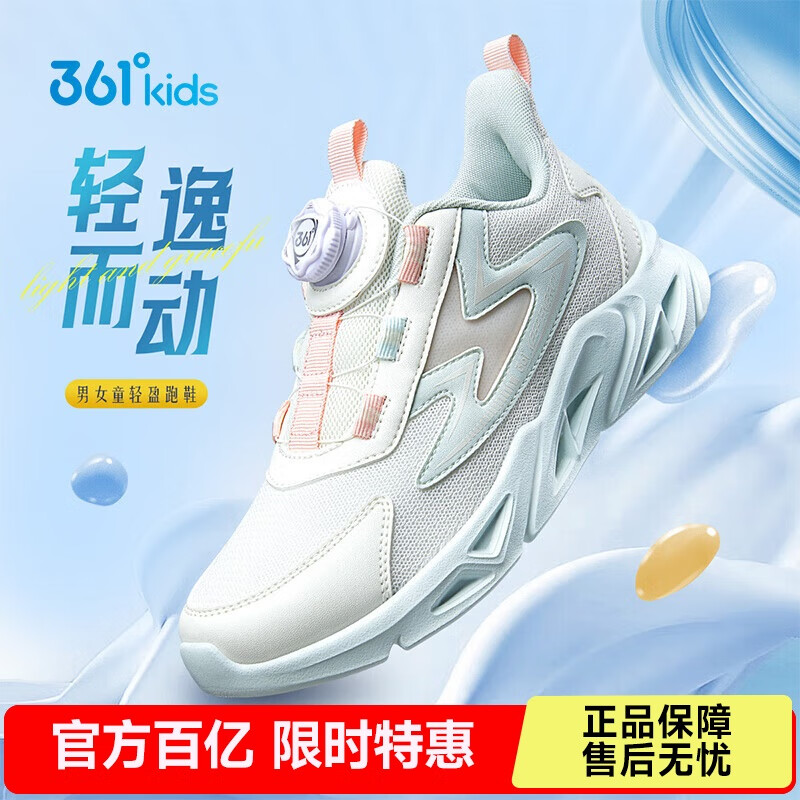 361°童鞋 儿童跑鞋四季男女童3-14岁助推科技旋钮跑鞋 白35
