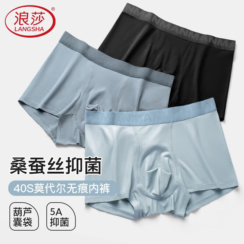 浪莎内裤男士莫代尔7A抑菌中腰男式平角裤男生四角短裤头
