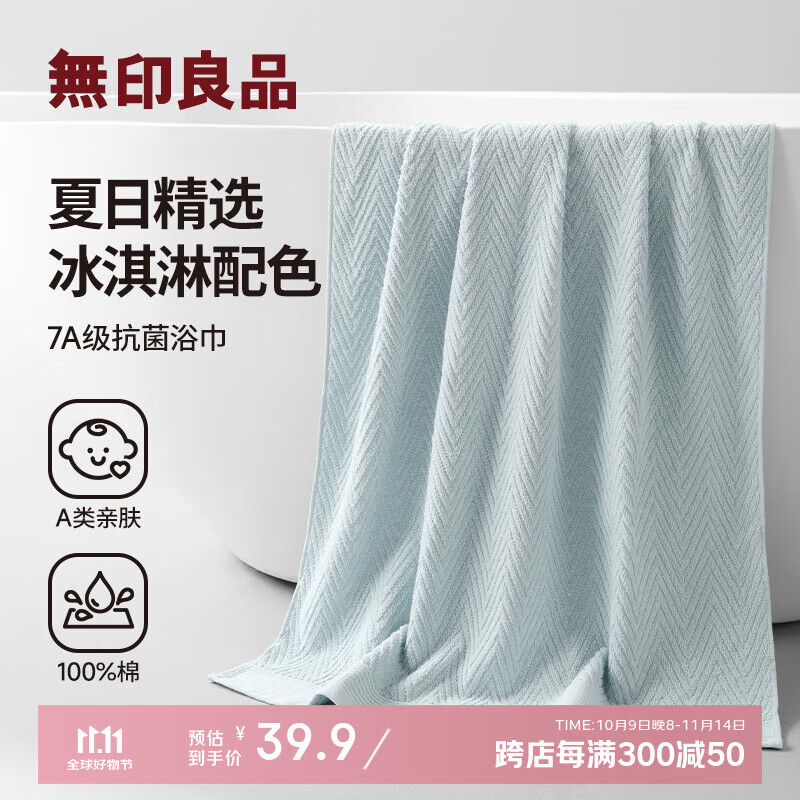 无印良品浴巾7A级抗菌100%纯棉亲肤不易掉毛新疆棉强吸水男士大浴巾蓝色