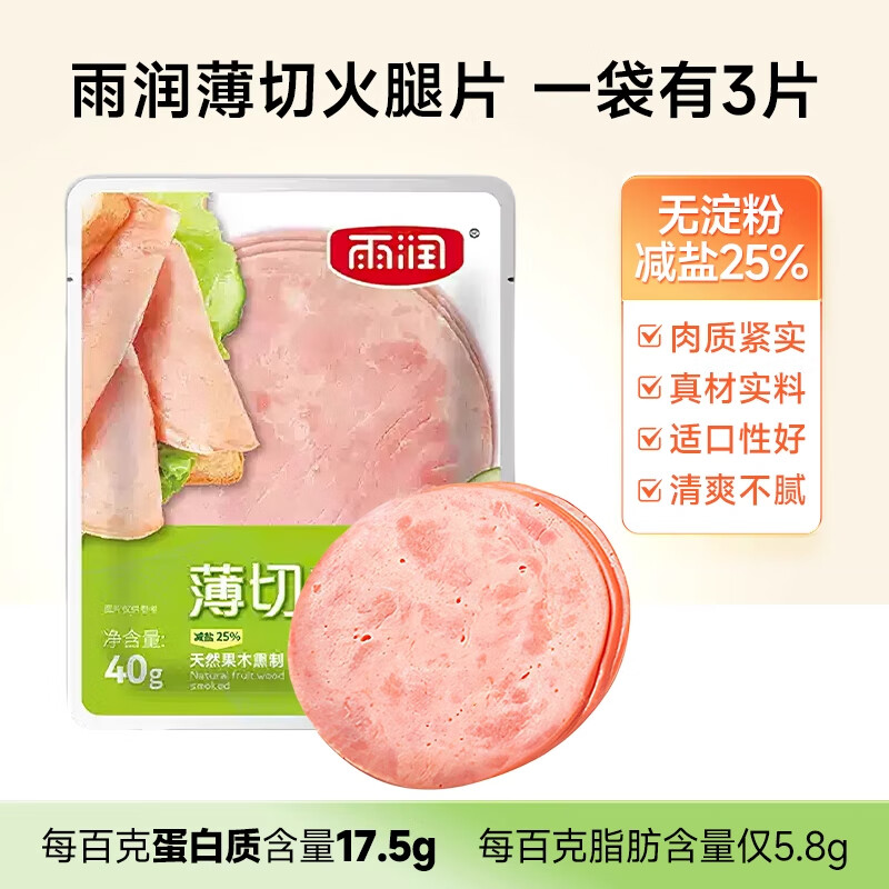 雨润 薄切鲜嫩火腿片40g*3袋 三明治火锅烧烤食材 营养高蛋白代餐轻食