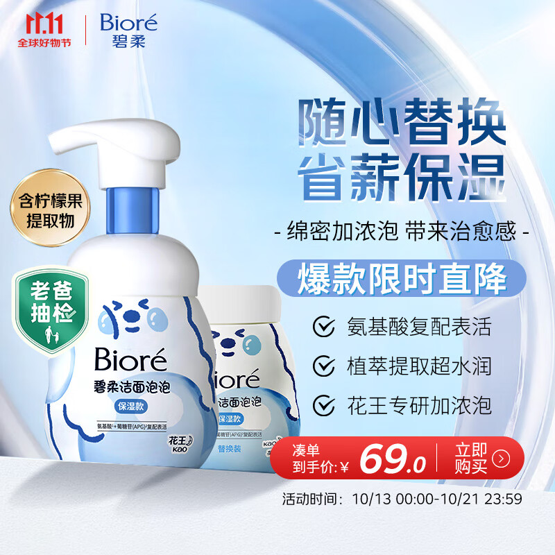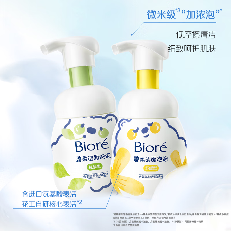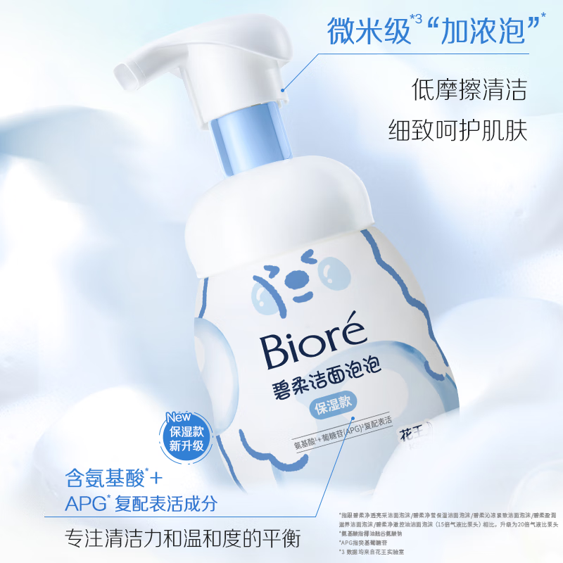 碧柔(Biore)花王泡泡熊保湿洗面奶男女士氨基酸表活洁面乳160ml*2生日礼物