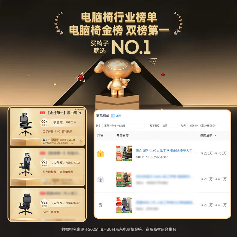 黑白调P1二代人体工学椅电脑椅子人工力学座椅久坐办公电竞椅学习椅国补
