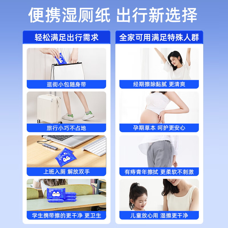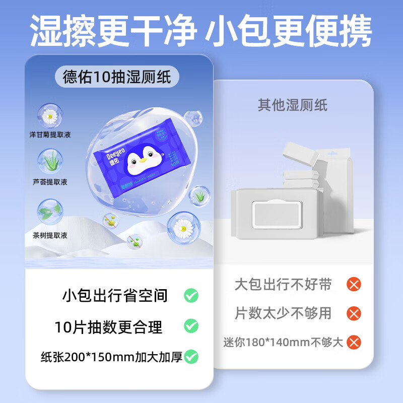 德佑湿厕纸便携装小包10抽20包出行清洁湿巾企鹅款加厚出行清爽不黏腻