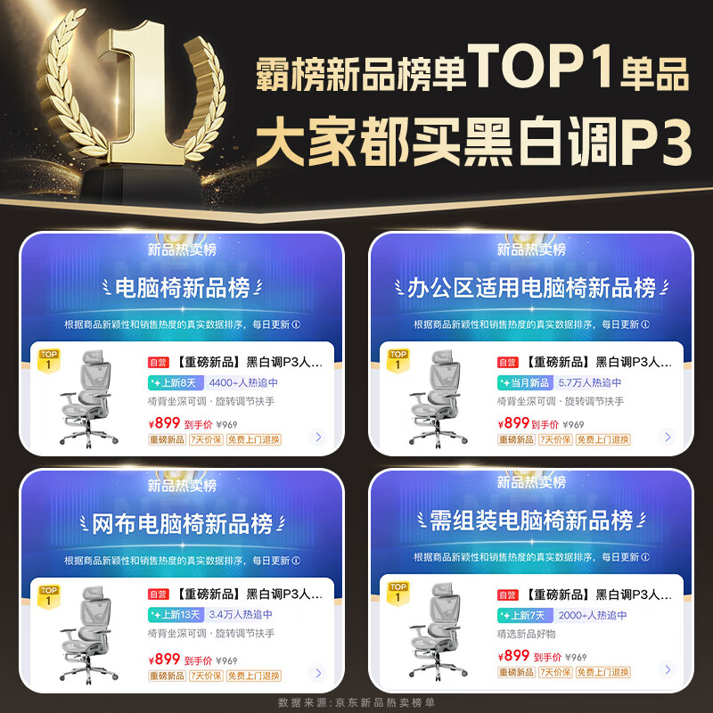 黑白调P3人体工学椅电脑椅办公人工力学座椅学习电竞椅子可躺国家补贴
