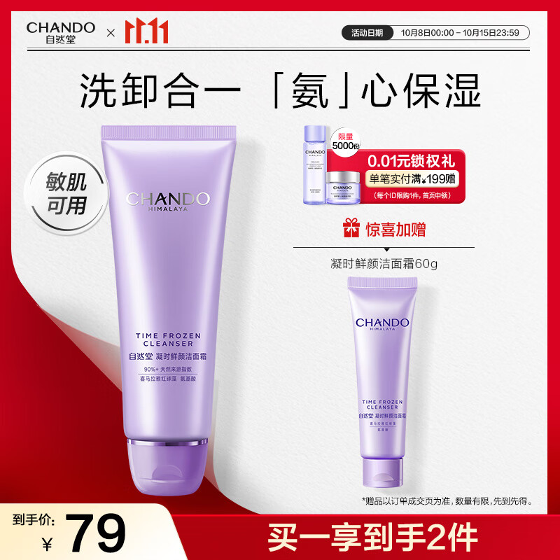 自然堂凝时鲜颜洁面霜125g 氨基酸深层清洁二合一洗面奶护肤品女