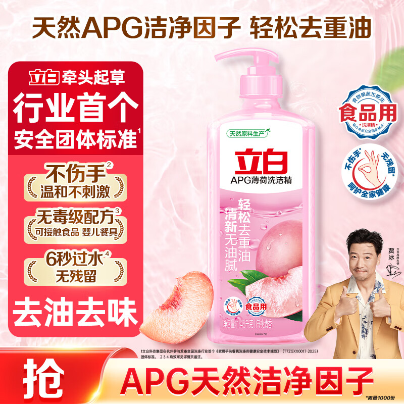 立白APG薄荷洗洁精大瓶1.45kg A类食品用 高效去油洗涤灵洗涤剂洗洁剂