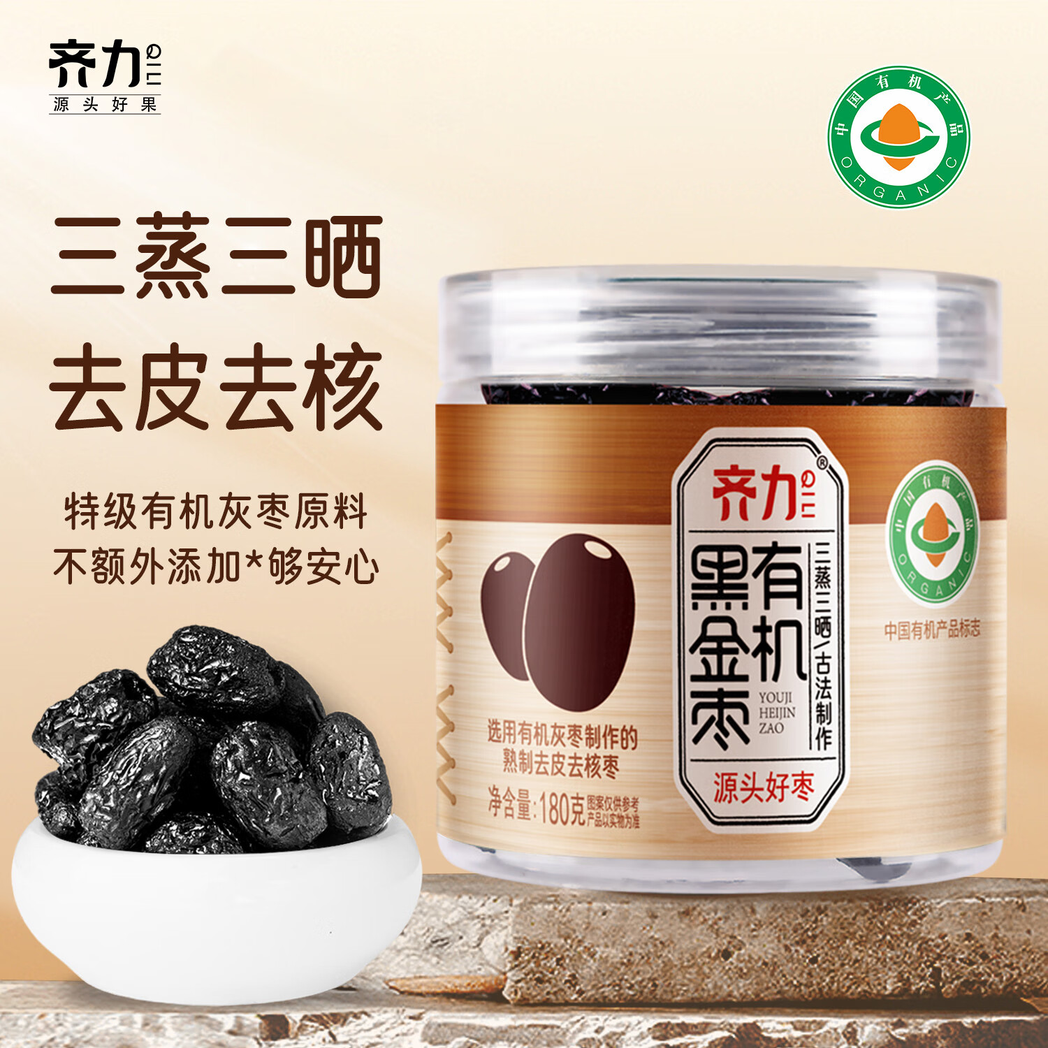 齐力有机黑金枣180g三蒸三晒红枣去皮去核熟制蒸枣 特级红枣蒸制即食