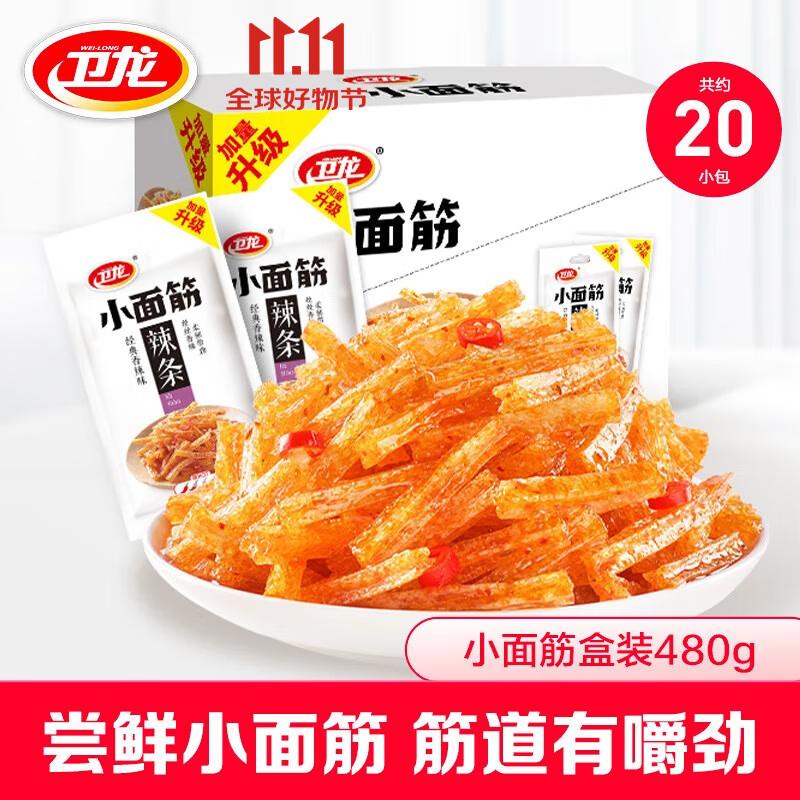 卫龙 辣条香辣味小面筋480g/袋约20包办公室休闲小零食怀旧小吃