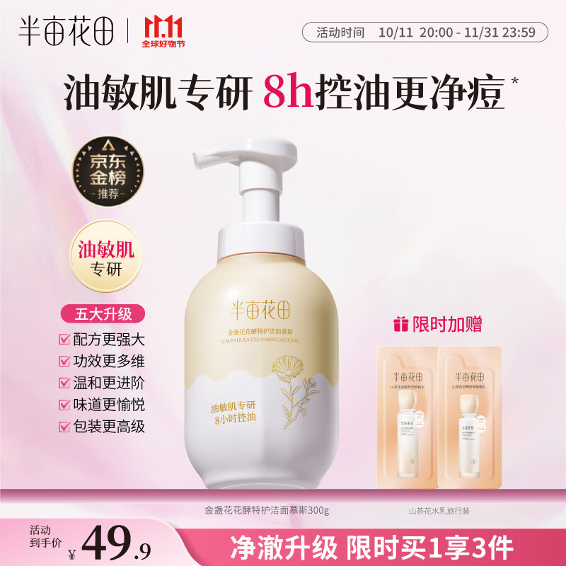 半亩花田金盏花洁面慕斯氨基酸洗面奶洁面乳控油祛痘清洁男女士清洁去黑头