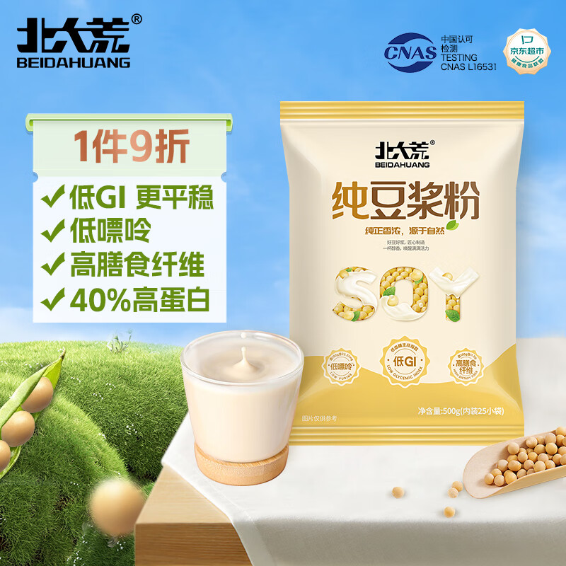 北大荒无添加糖纯豆浆500g(25包)非转基因高纤高蛋白低gi冲饮谷物早餐