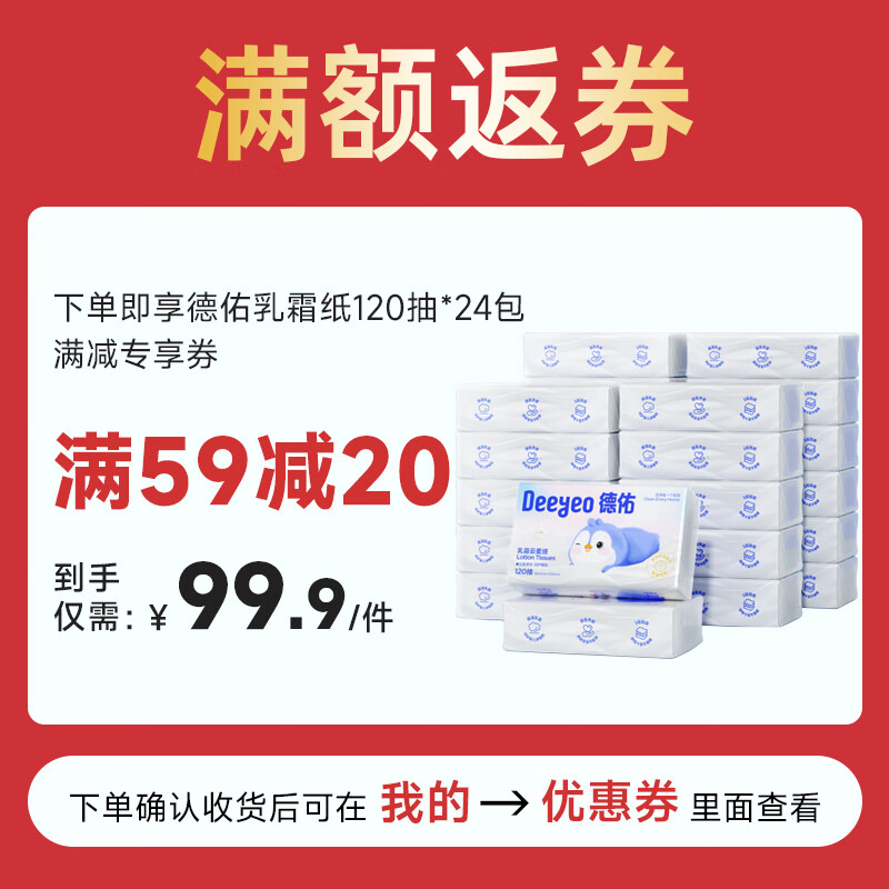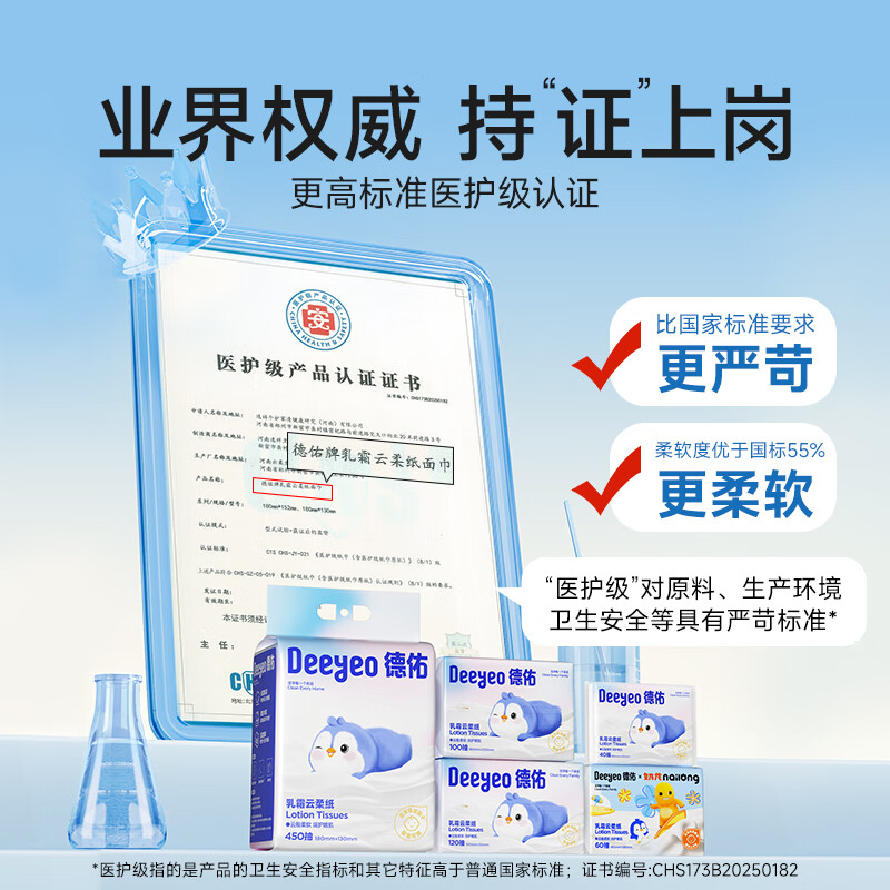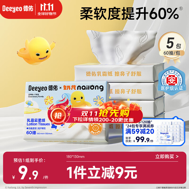 德佑婴儿云柔巾保湿纸巾乳霜纸60抽5包儿童超柔软抽纸奶龙款