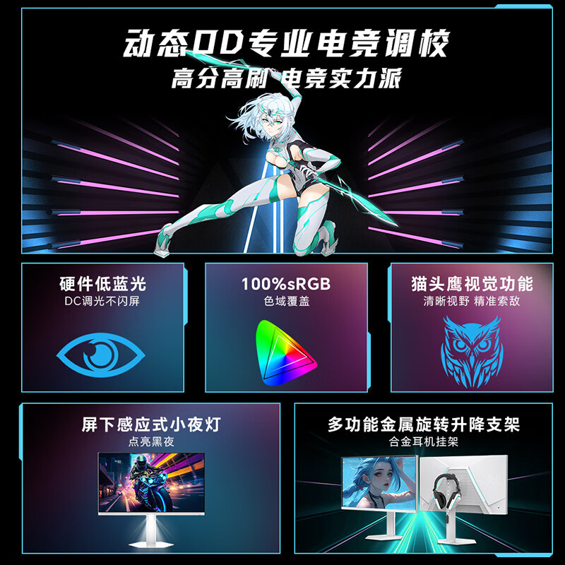 SANC 盛色27英寸2K320Hz FastIPS 硬件低蓝光IGZO技术 1ms旋转升降 白色海景房AI电竞显示器屏幕 S85