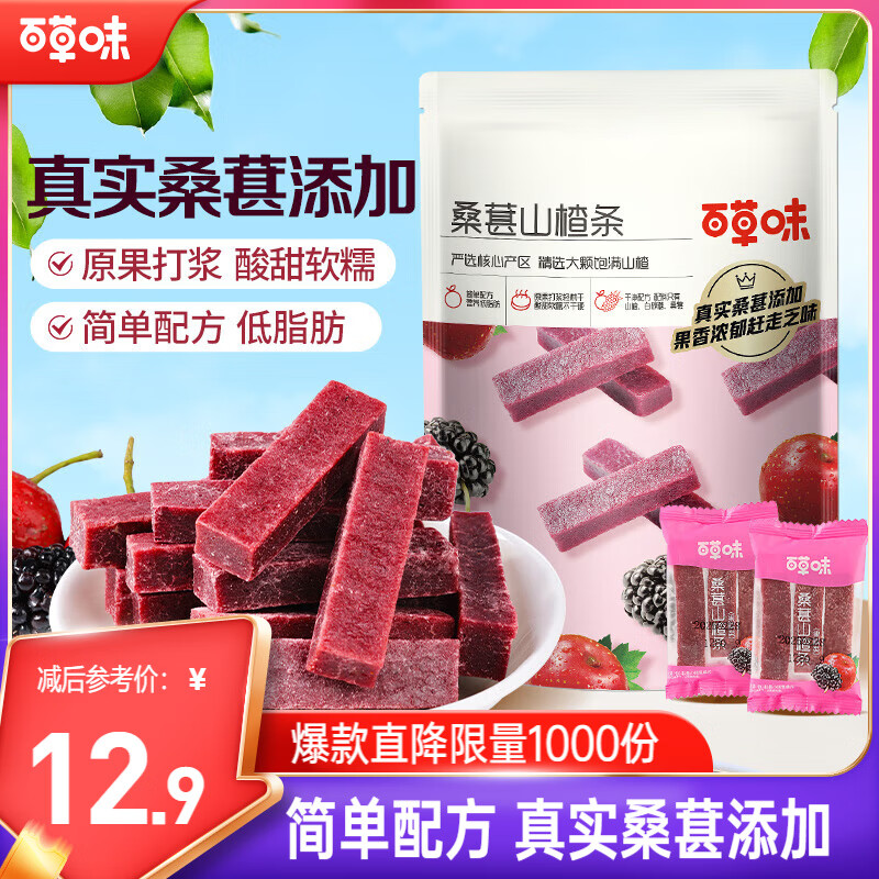 百草味桑葚山楂条408g山楂干片卷果丹皮蜜饯酸甜开胃办公休闲零食