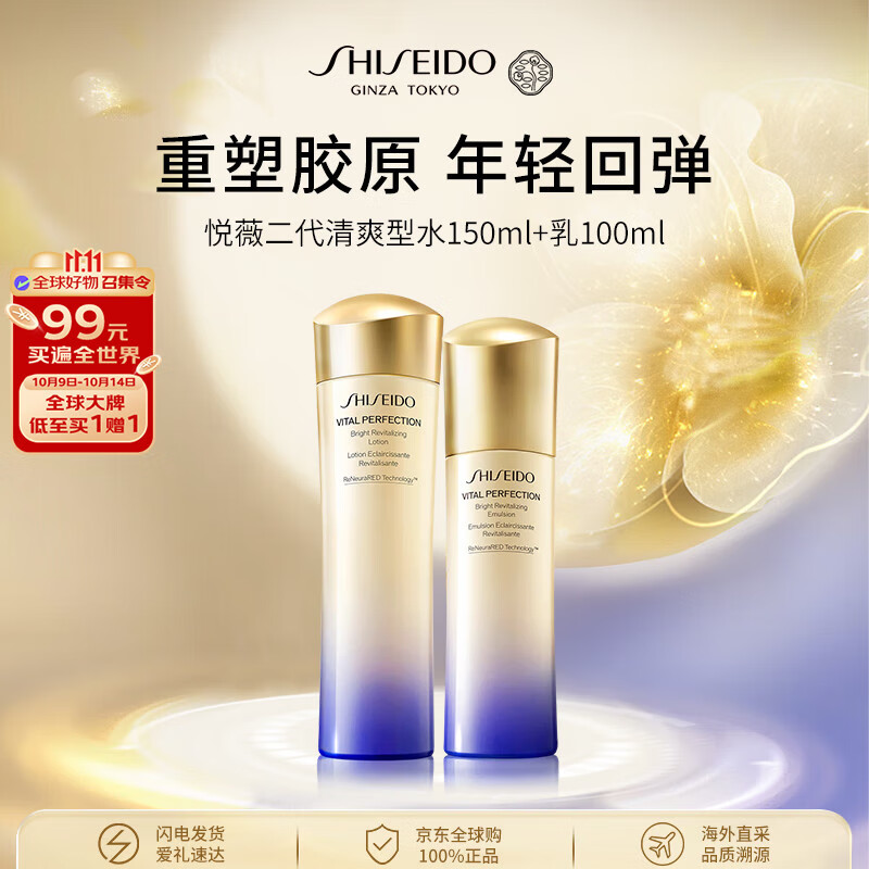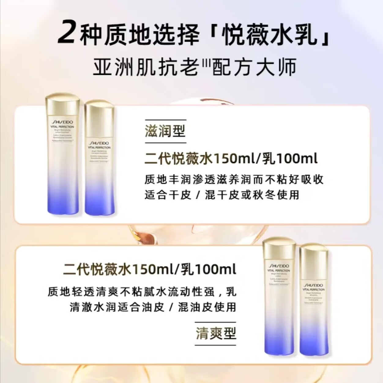 资生堂悦薇清爽二代水乳套装250ml补水保湿抗老护肤品女生日礼物双11