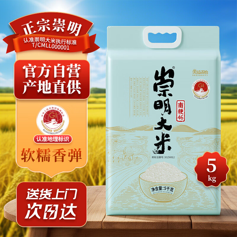 崇明大米正宗 崇明岛直供 南粳46大米5公斤 软糯香米 珍珠米 含胚芽10斤