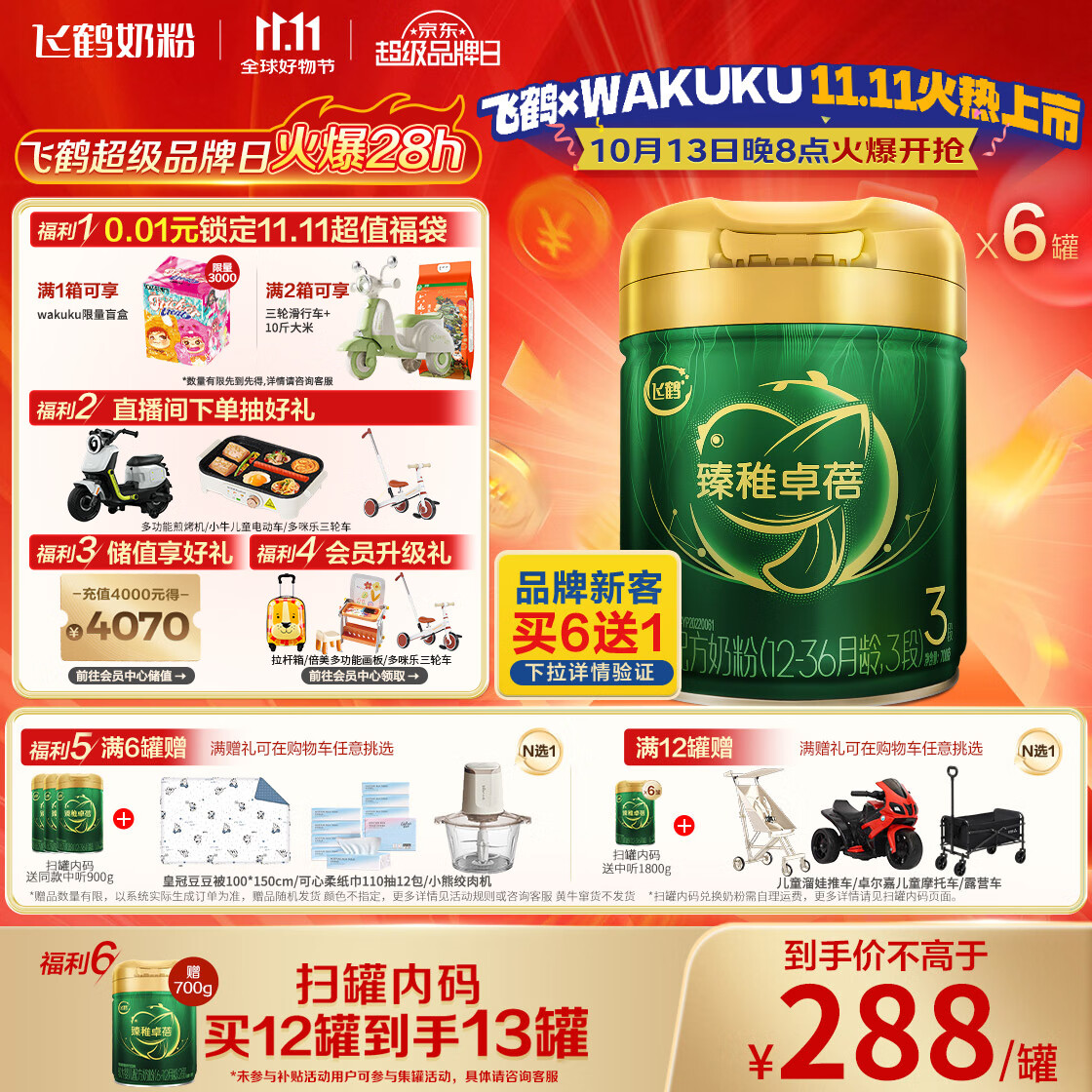飞鹤臻稚卓蓓有机 幼儿配方奶粉3段(1-3岁)700g*6 乳铁蛋白 育儿补贴