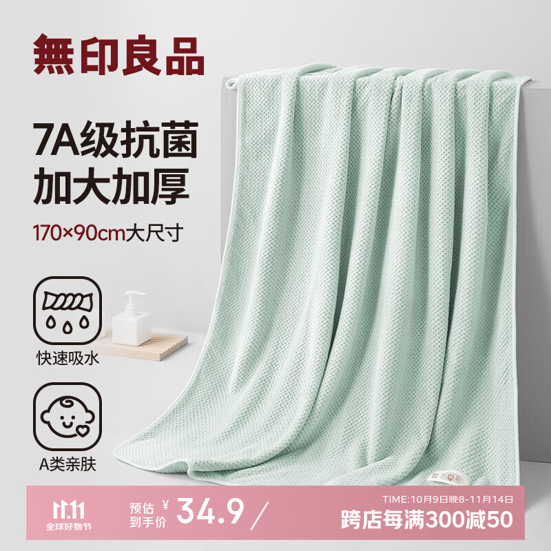 无印良品浴巾7A级抗菌亲肤柔软吸水A类加厚不易掉毛男士女生洗澡大浴巾绿