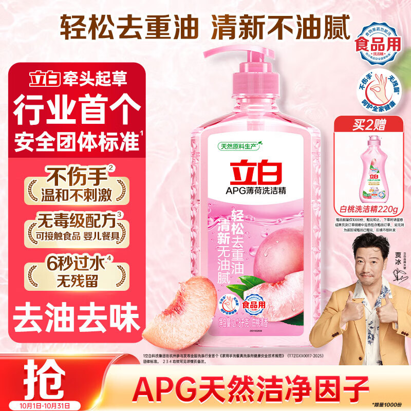 立白APG薄荷洗洁精4.36斤 洗涤灵洗碗液 轻松去重油A类食品果蔬可洗