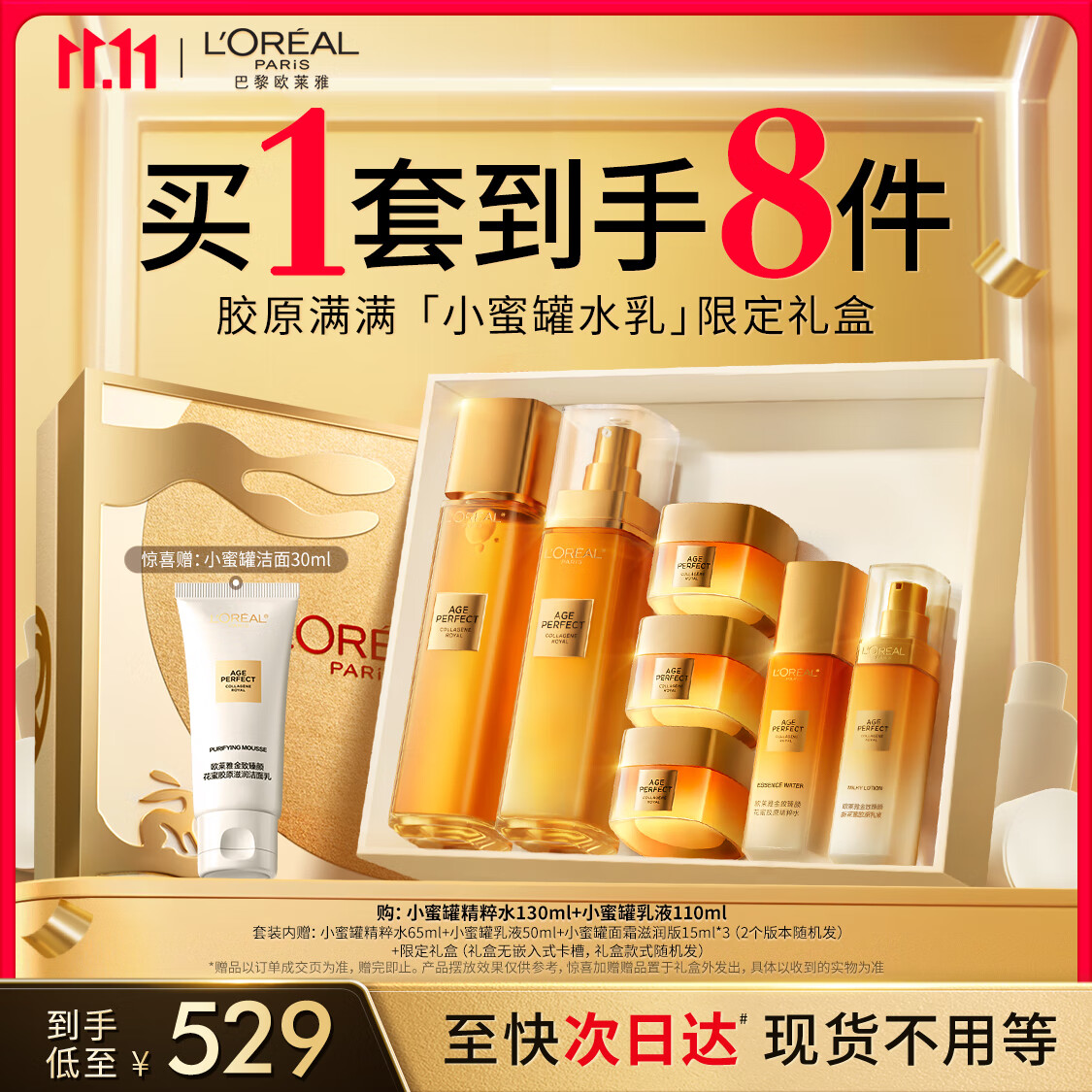 欧莱雅花蜜胶原小蜜罐水乳限量礼盒套装抗皱补水护肤品化妆品生日礼物