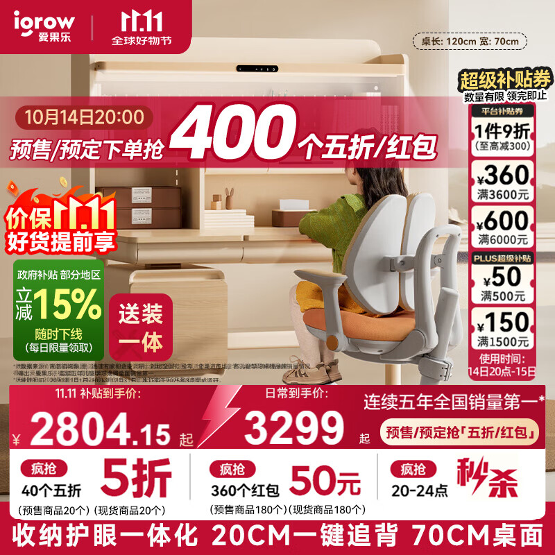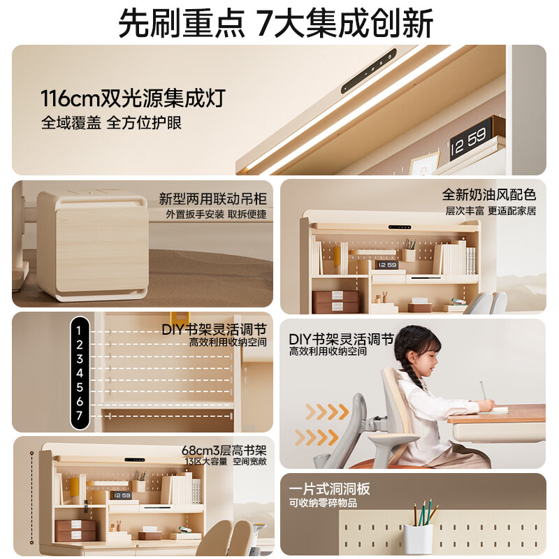 爱果乐(IGROW)咖啡猫2.0儿童学习桌书桌椅套装写字桌升降中小学生家用课桌1.2m