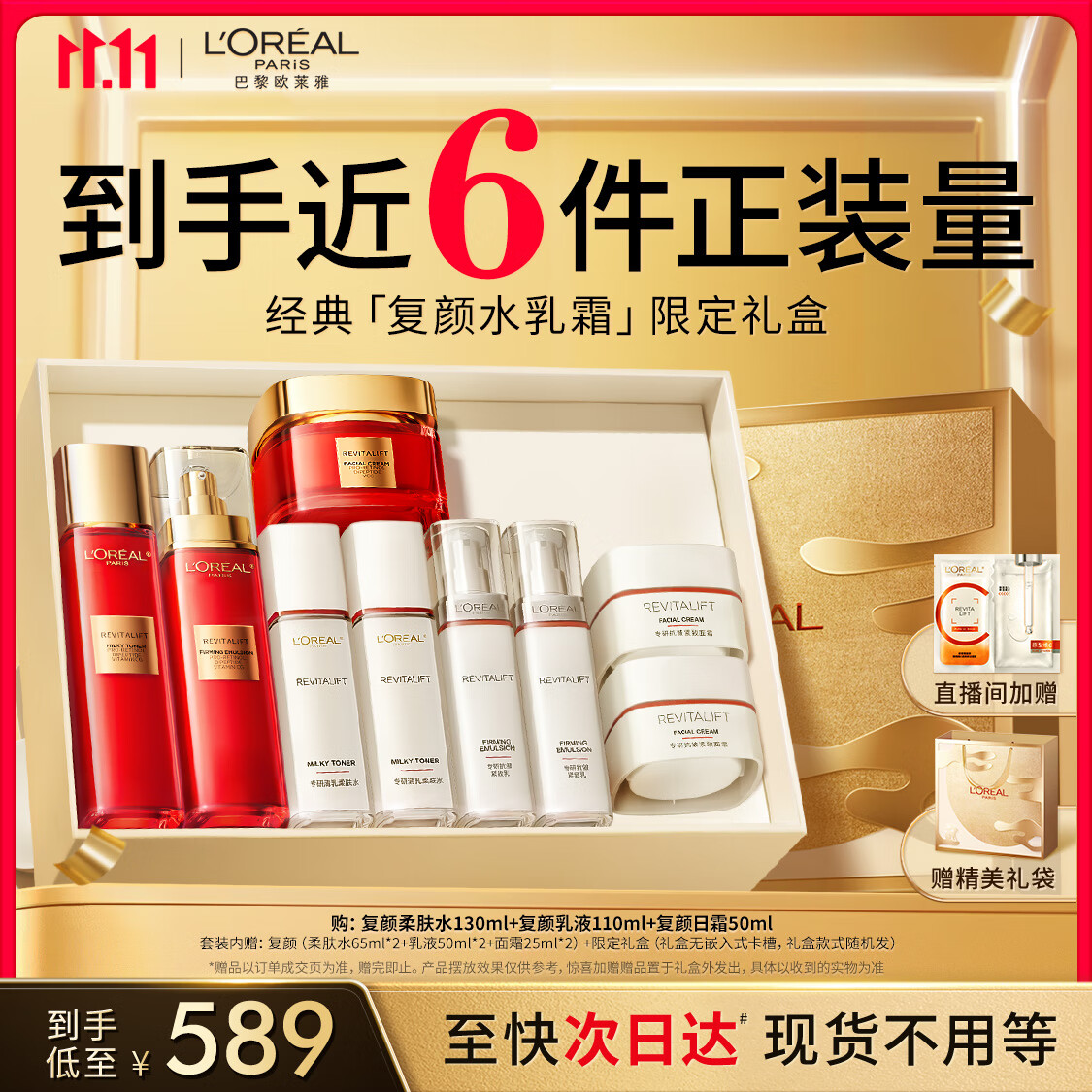 欧莱雅复颜水乳霜限量礼盒套装补水保湿抗皱紧致护肤品生日礼物