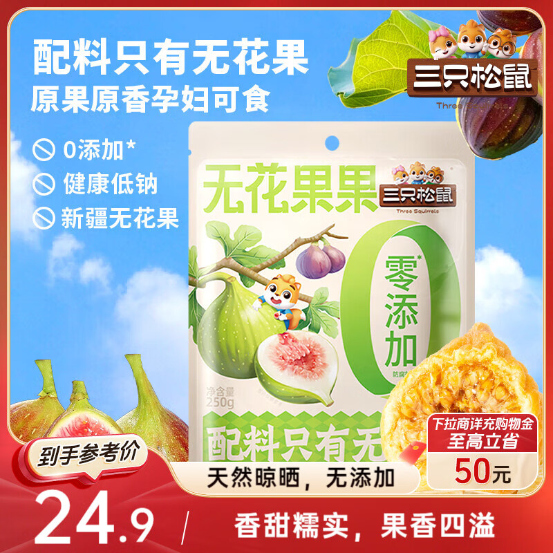 三只松鼠无花果干250g新疆特产休闲零食蜜饯果脯即食无添加滋补孕妇