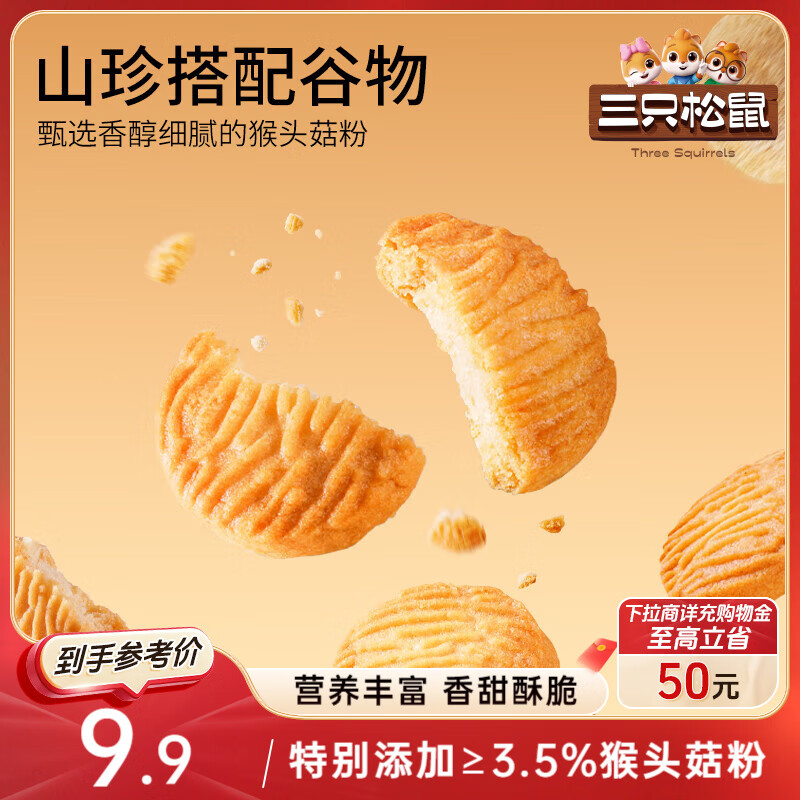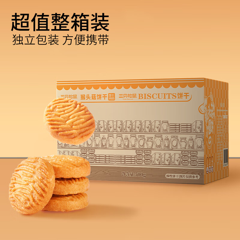 三只松鼠猴头菇小圆饼500g箱装 早餐儿童孕妇营养健康零食饼干点心送礼
