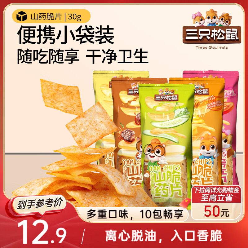 三只松鼠山药脆片混合口味30g*10袋膨化怀旧零食薯片休闲追剧独立小包装