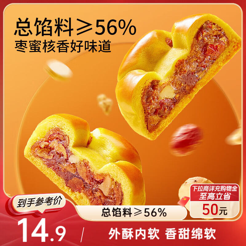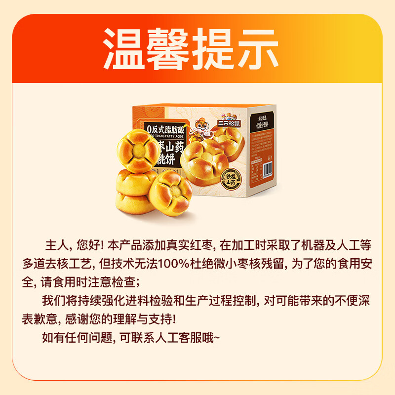 三只松鼠红枣山药核桃饼500g 零食点心早餐办公室下午茶解馋小吃中式糕点
