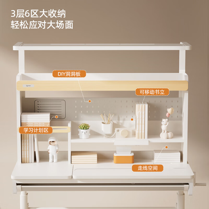爱果乐(IGROW)小明同学儿童学习桌书桌实木升降护眼大路灯阳光桌椅套装一体1.2m