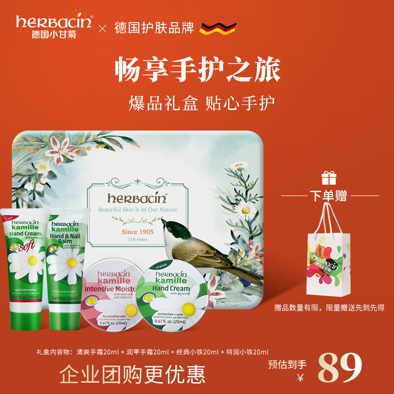 HERBACIN好本清小甘菊护手霜小鸟礼盒20ml*4 伴手礼送礼礼物