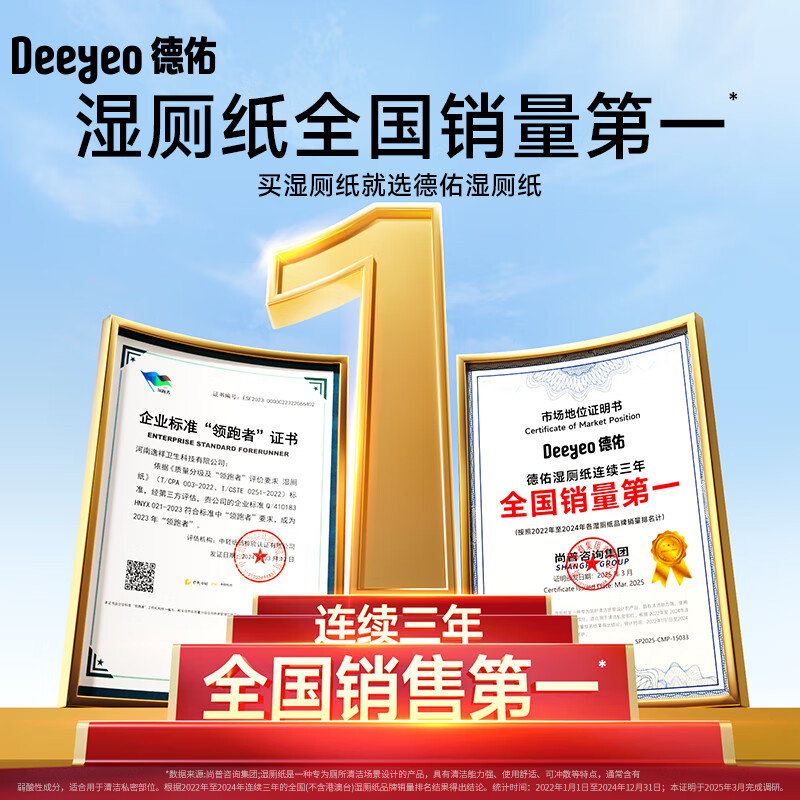 德佑湿厕纸家庭装80抽*6包 洁厕湿纸巾厕纸湿巾 可搭配卷纸可冲入马桶