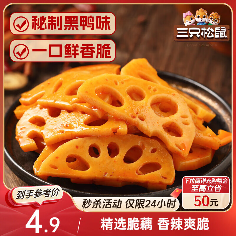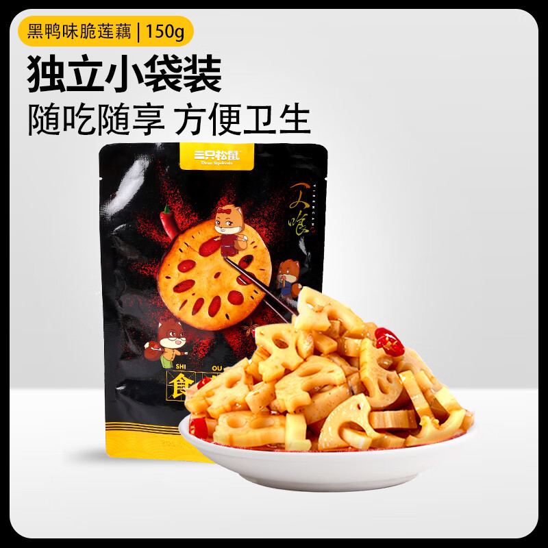三只松鼠脆藕片黑鸭味150g 休闲零食特产香辣莲藕卤味特产素食解馋
