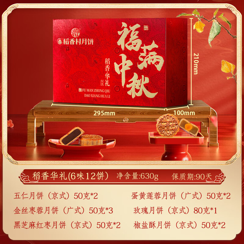 稻香村(DXC)月饼礼盒 12饼6味含蛋黄莲蓉月饼中秋节礼品团购福利630g稻香华礼