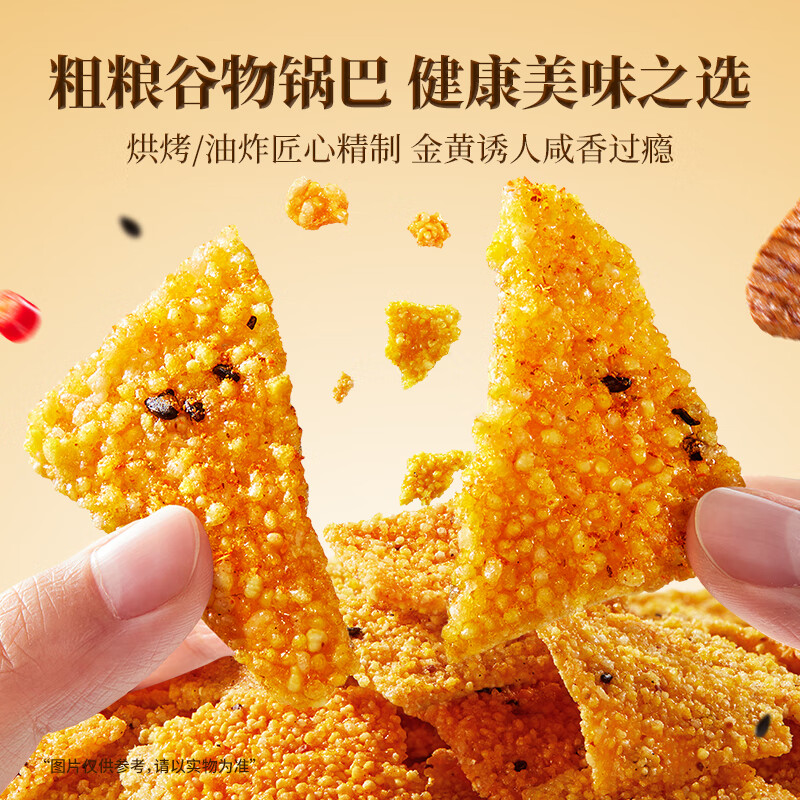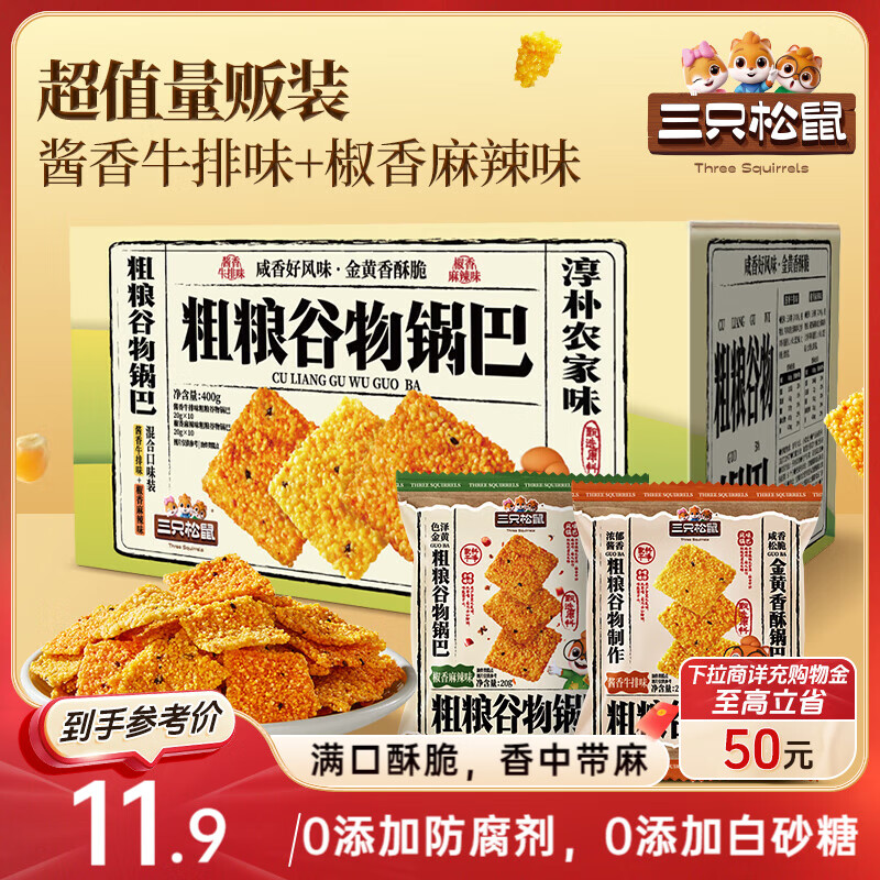 三只松鼠粗粮谷物锅巴300g混合口味箱装椒香麻辣酱香牛排膨化零食解馋