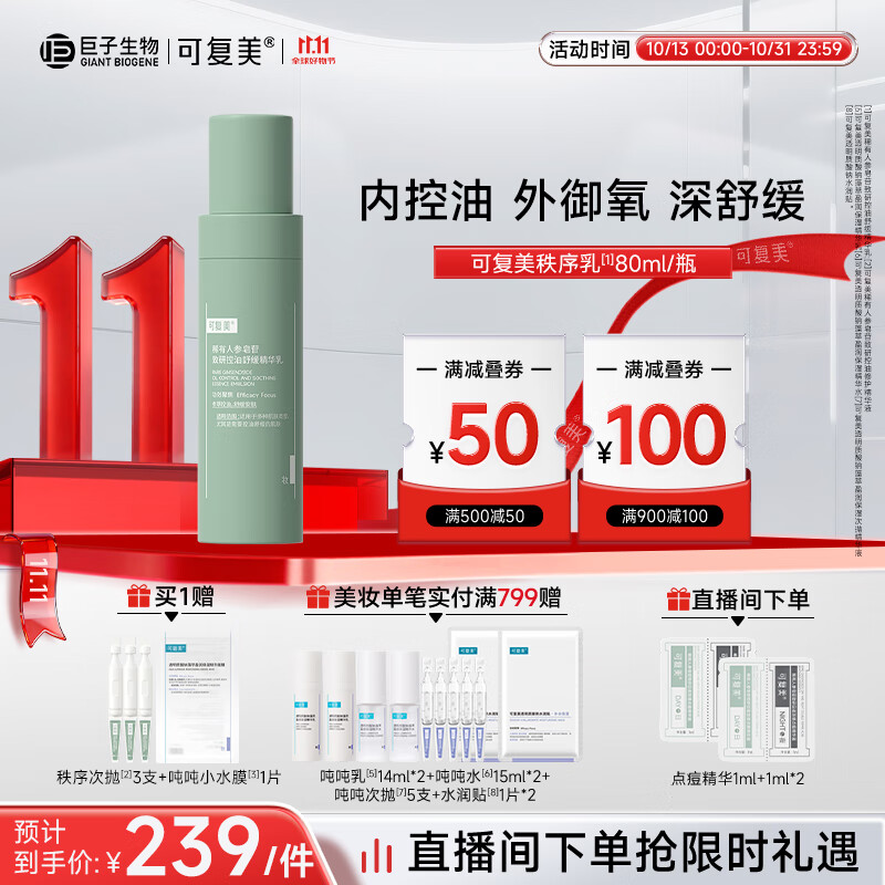 可复美秩序乳80ml/瓶稀有人参皂苷致研控油舒缓精华乳长时控油平衡舒缓