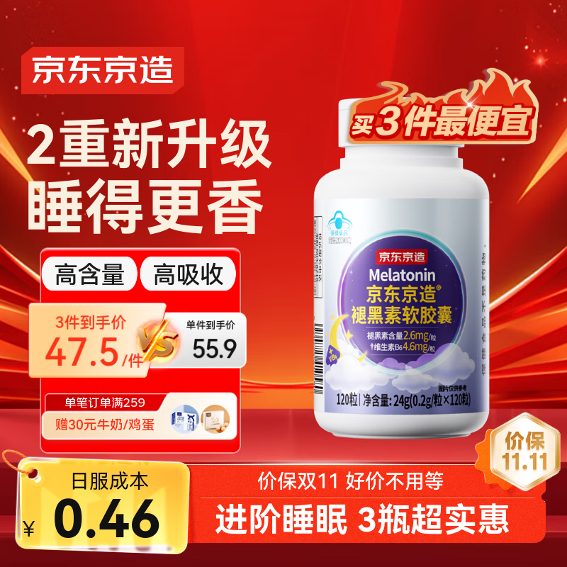 京东京造褪黑素软胶囊120粒 高含量退黑素VB6改善睡眠助眠失眠成人中老年