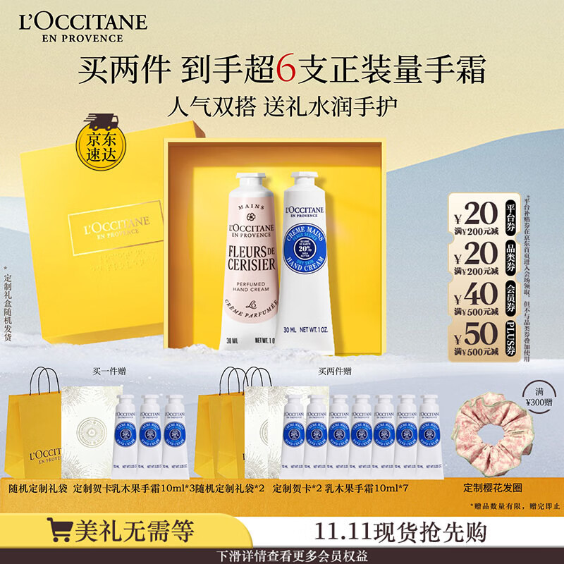欧舒丹护手霜乳木果2支装礼盒保湿滋润持久留香手膜伴手礼物(香型随机)