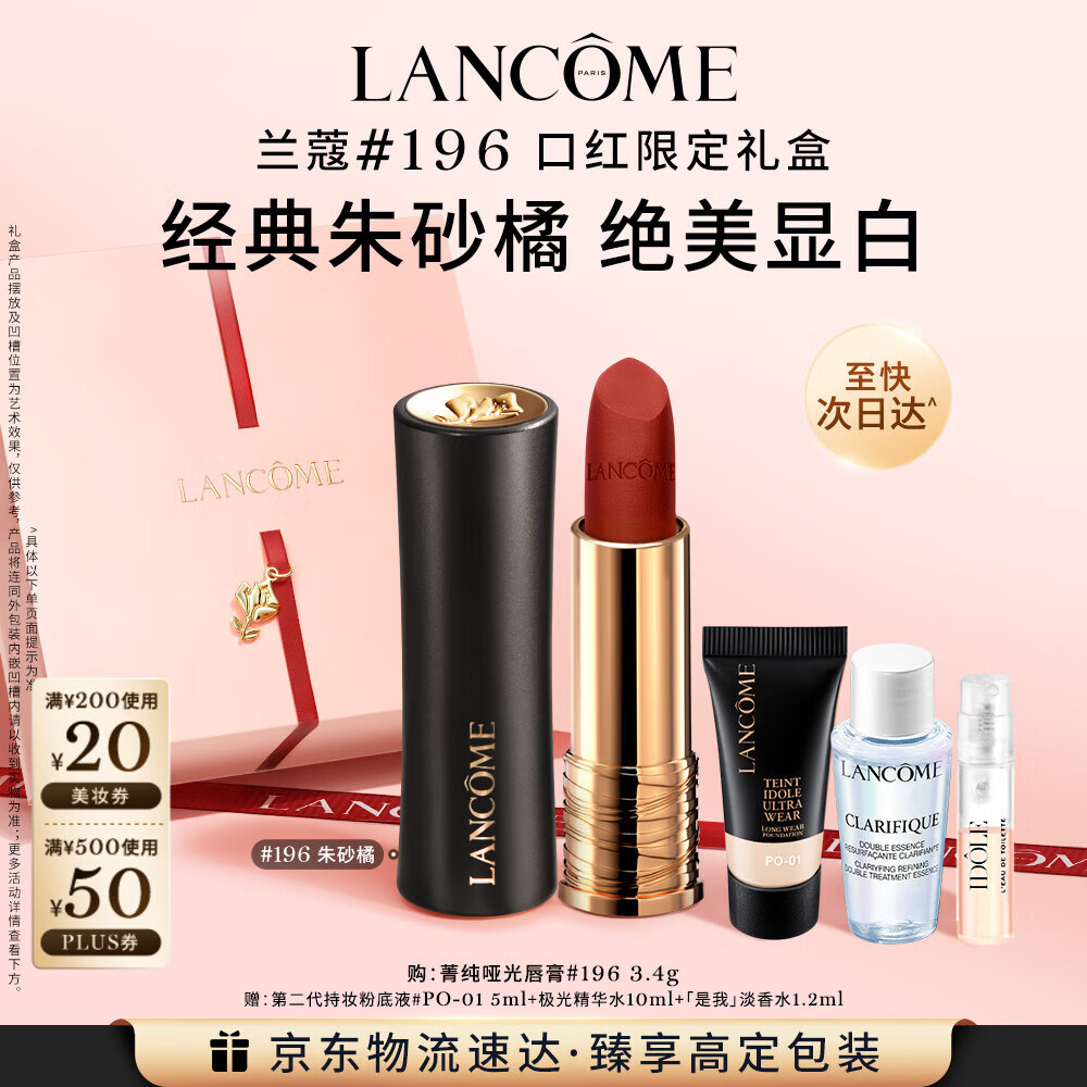 兰蔻196口红哑光雾面唇膏经典朱砂橘显白礼盒礼物送女友生日