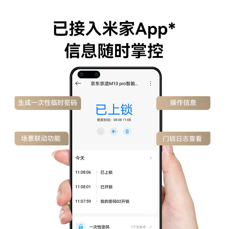 京东京造智能门锁M10Pro已接入米家APP电子锁指纹锁入户门防盗密码锁