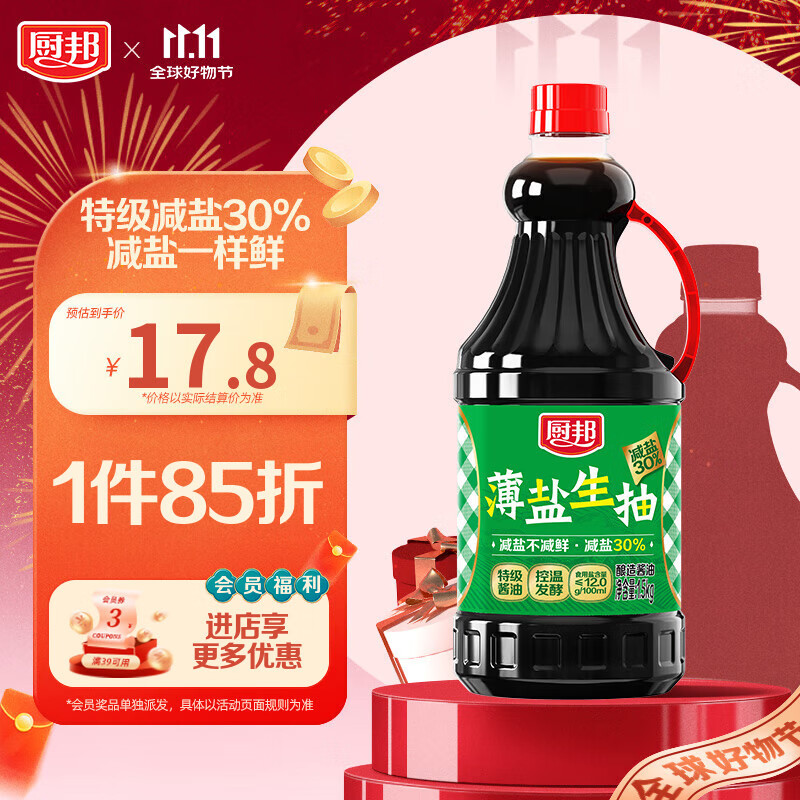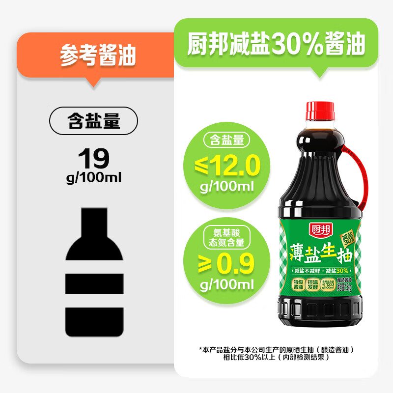 厨邦酱油 薄盐生抽 酱油【黄豆特级酱油】1.5kg 酿造酱油 减盐30%