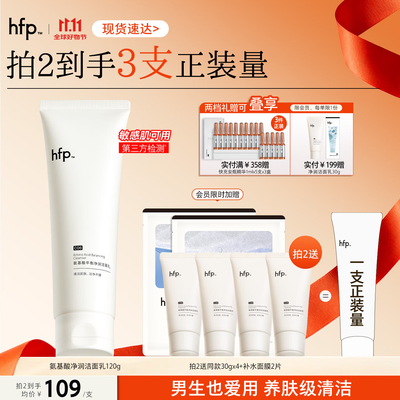hfp氨基酸洗面奶男女洁面乳120g清洁毛孔温和不伤肤补水保湿护肤品