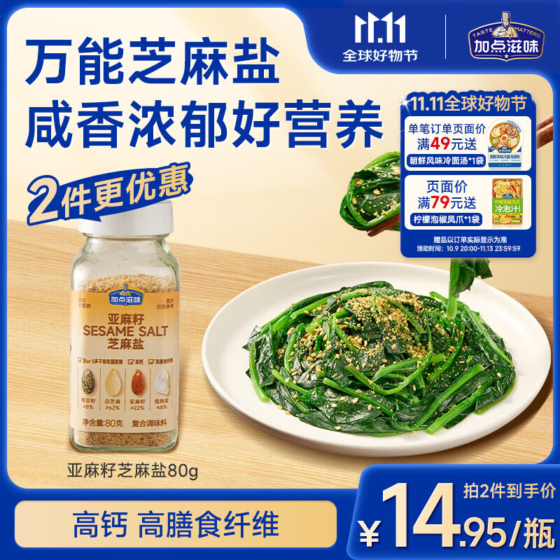 加点滋味亚麻籽芝麻盐80g高钙高膳食纤维百搭凉拌菜调料拌面奇亚籽低钠盐