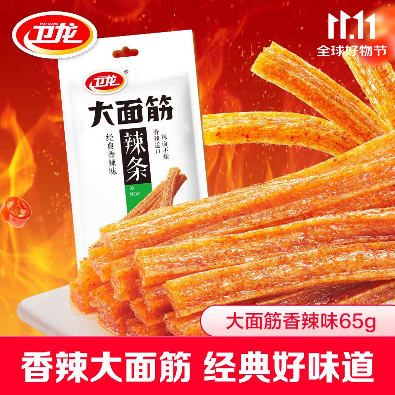 卫龙辣条大面筋香辣味65g儿时怀旧小吃办公室休闲零食凑单