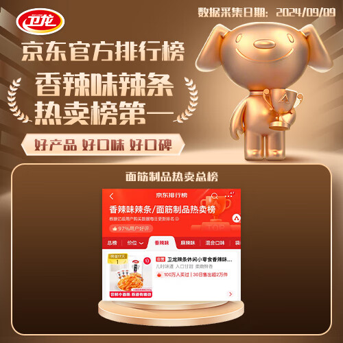 卫龙辣条休闲小零食香辣味小面筋282g/袋约13包怀旧童年豆干小吃