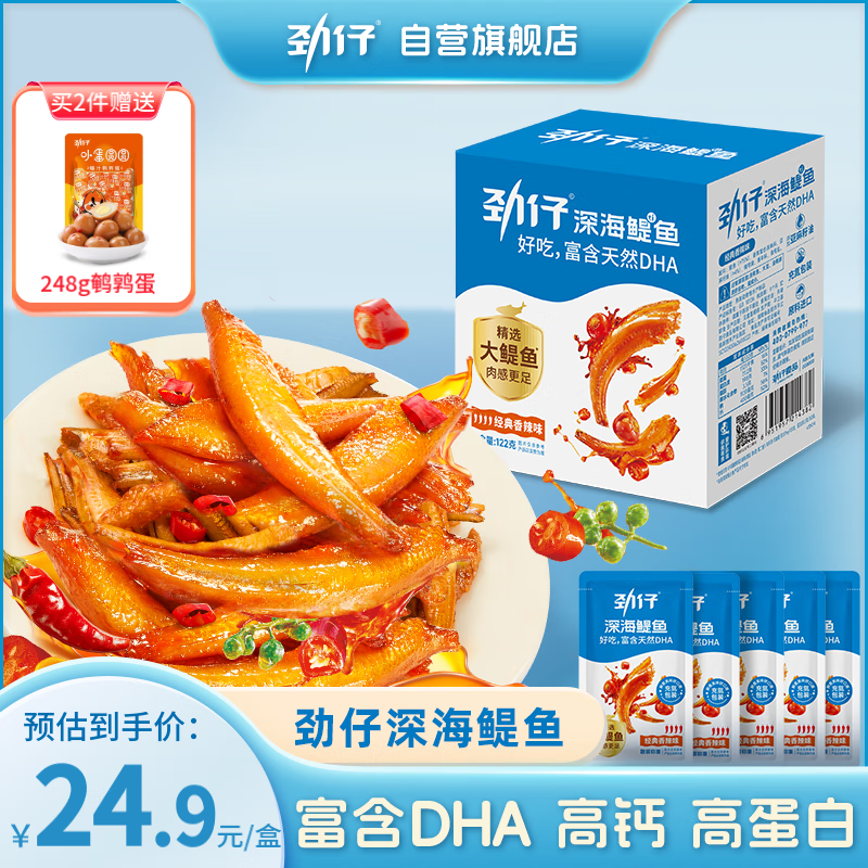劲仔深海鳀鱼 DHA 高蛋白 健康即食海味零食 果木炭烧味 122g