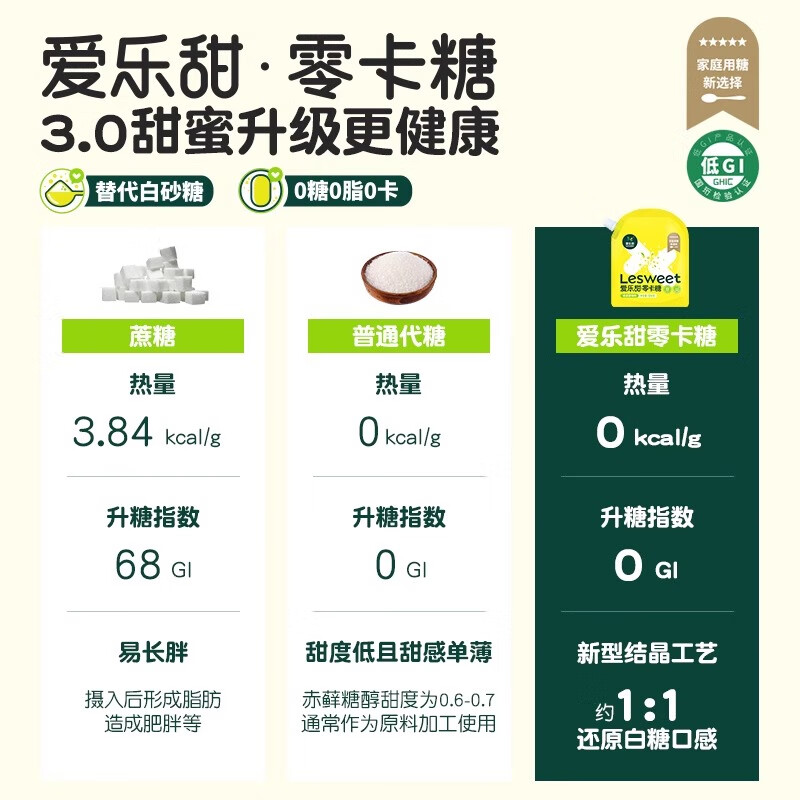 爱乐甜零卡糖咖啡代糖0卡糖1:1代白砂糖赤藓糖醇冲饮饮料天然调味品500g