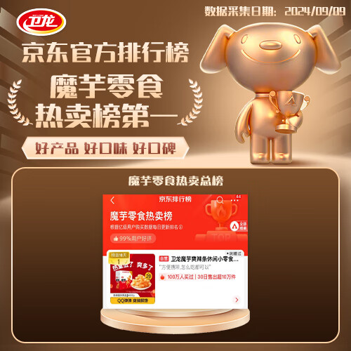 卫龙魔芋爽辣条休闲零食香辣素毛肚180g/袋约12小包露营野餐小零食
