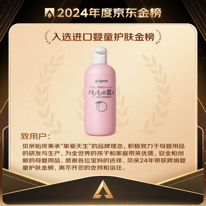 贝亲(Pigeon)桃子水 宝宝婴儿儿童桃叶精华 液体爽身露 日本本土版 200ml*1