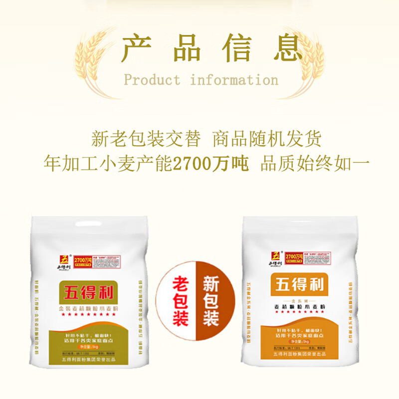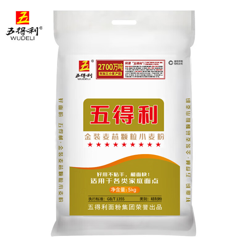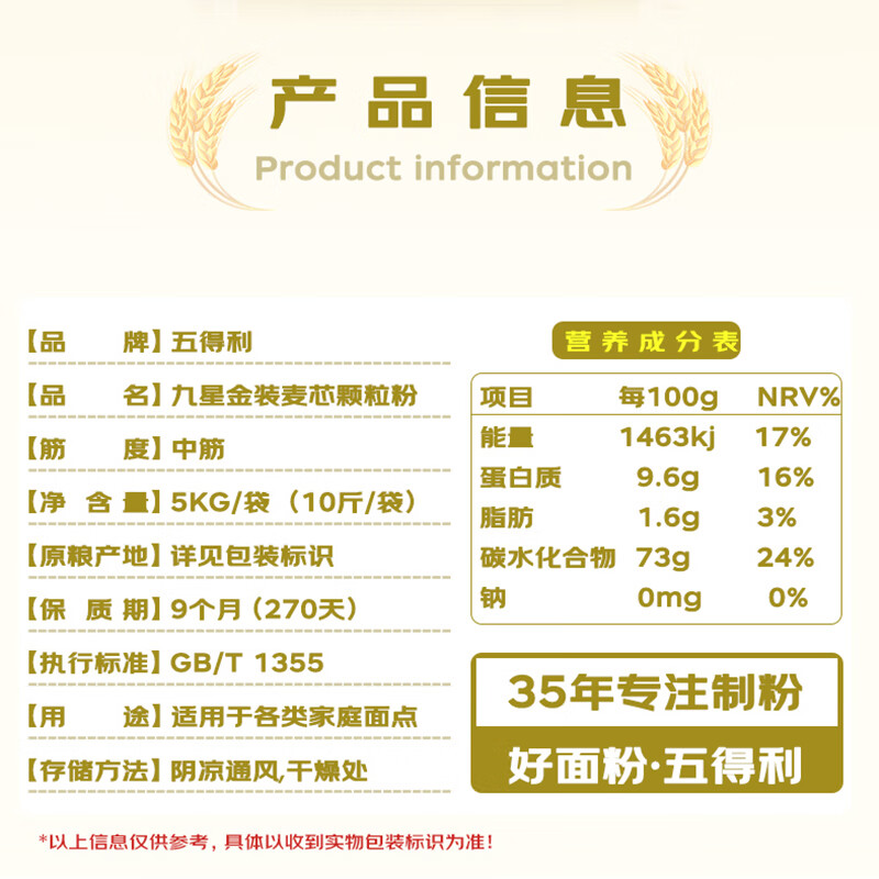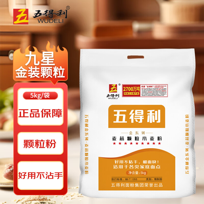 五得利面粉九星金装麦芯颗粒粉中筋面粉多用途家用馒头饼优质面粉 5kg(10斤)